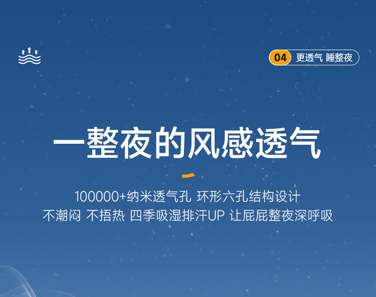 【透氣UP+】100000+*納米透氣孔 不悶不潮透而不漏 有氧呼吸 整夜干爽,更透氣 睡香香