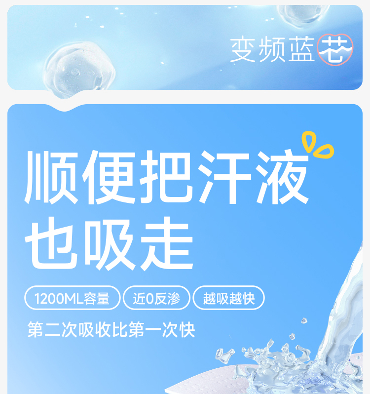 【變頻藍芯】尿液汗液通通鎖住,不返滲夏日睡得沉,不僅能吸收尿液,汗液也能吸。尿液吸收第二次比第一次快,夏天粘膩說拜拜。
