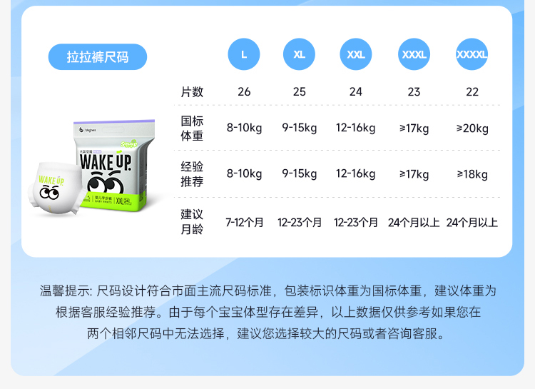 學步褲:L、 XL、XX、XXXL、XXXXL